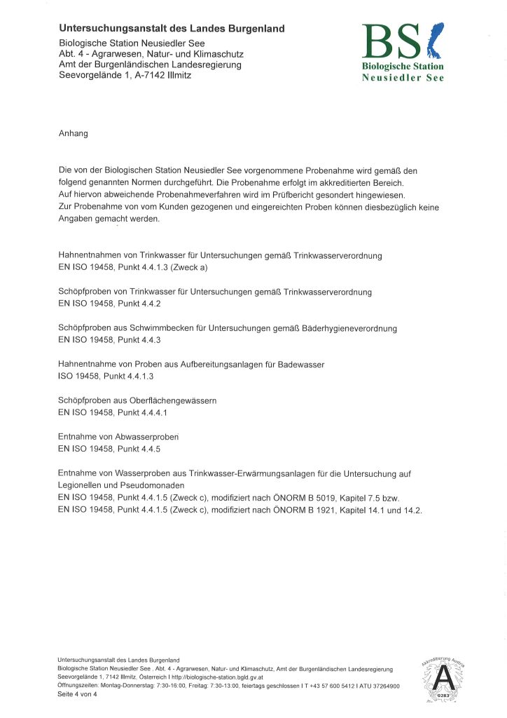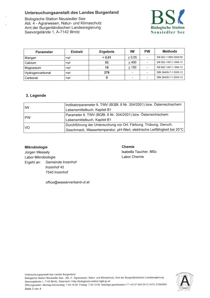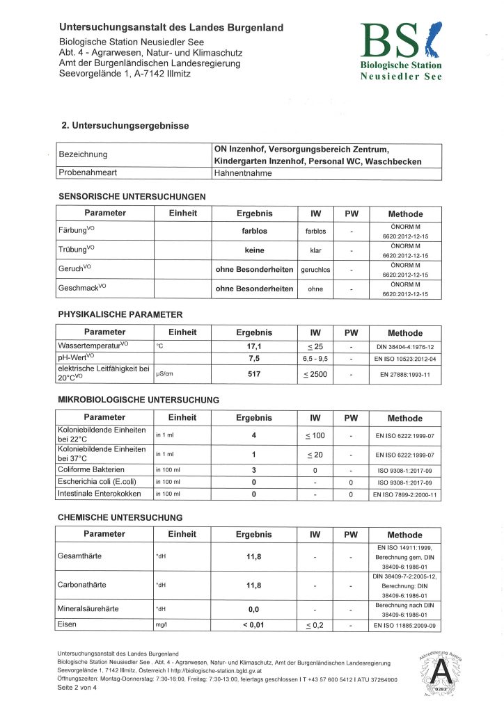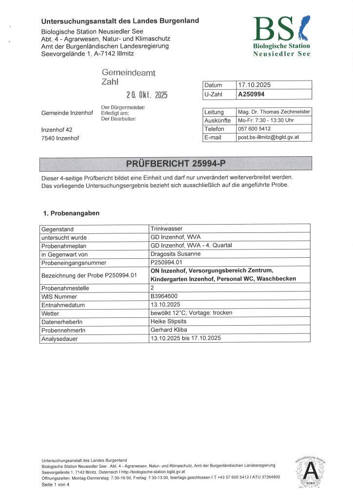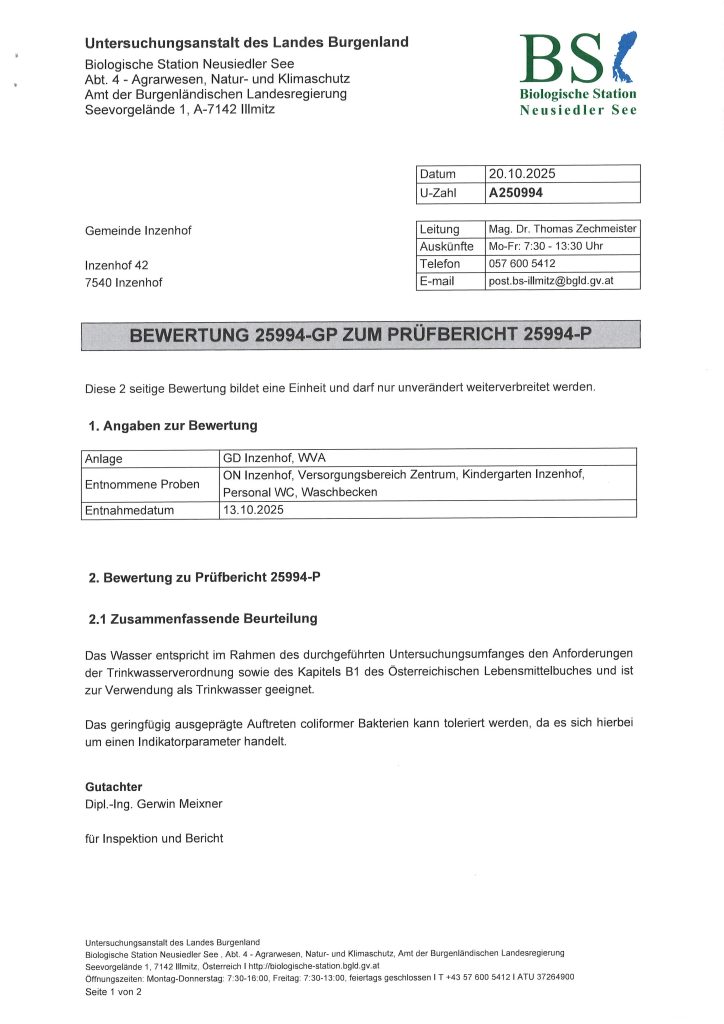 Wasseruntersuchung Ortsnetz Inzenhof am 13.10.2025